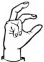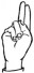 На ћирилици написано БУДИМИР ЈАЗАЧКИ састоји се из 14 слова [?]. Исписано ћириличном једноручном азбуком за глувонеме: